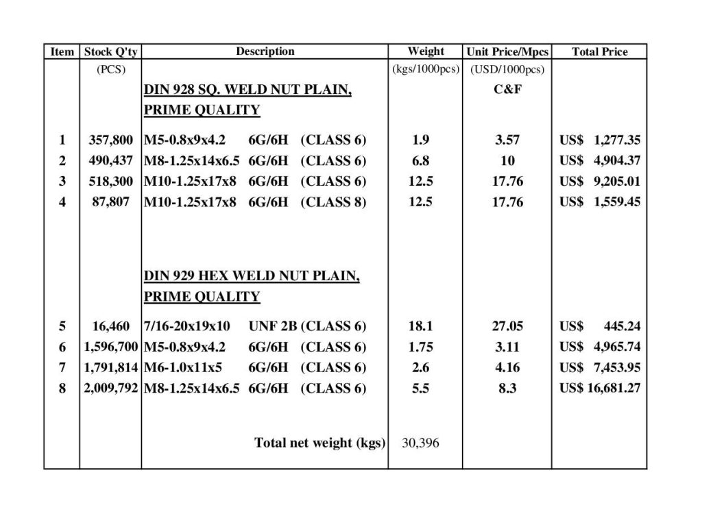 Product: DIN 928 SQ. WELD NUT PLAIN, PRIME QUALITY