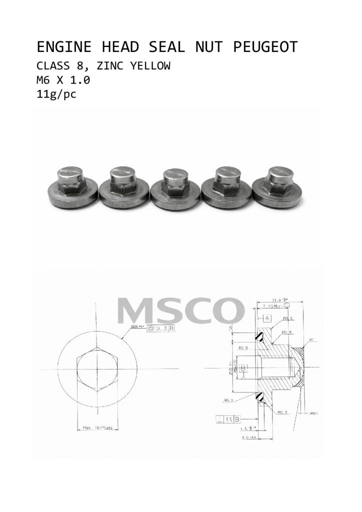 ENGINE HEAD SEAL NUT PEUGEOT FOR IRANIAN, CLASS 8, ZINC YELLOW, M6x1.0